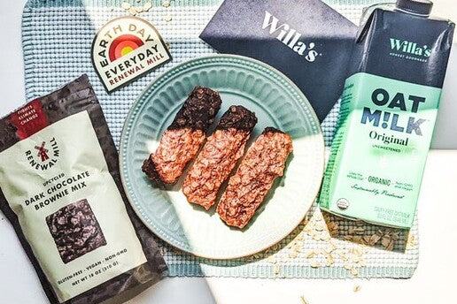 There’s nothing we love more than a recipe that only calls for a handful of ingredients. Renewal Mill’s Upcycled Dark Chocolate Brownie Mix provides the perfect base for this recipe with its rich chocolate flavor. The best part is, Renewal Mill’s upcycled mixes use super simple ingredients you can recognize, just like Willa’s. The brownie mix plus Willa’s Whole Oat Milk, rolled oats, bananas, and (optional) walnuts make for the perfect slice of sweet, nutty flavor.