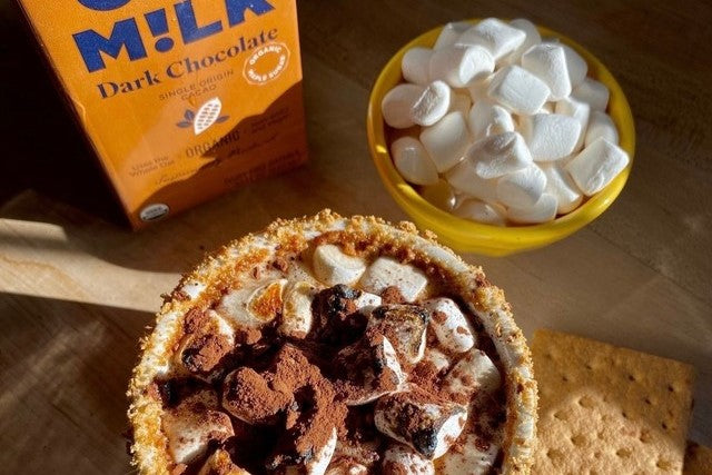 Willa's Dark Chocolate Oat Milk uses all simple, real, organic, non-GMO, vegan ingredients you can pronounce. Willa's Dark Chocolate Oat Milk is just filtered water, organic whole grain oats, organic maple sugar, organic Raaka cacao, organic vanilla extract and sea salt. We love using clean label graham crackers and marshmallows for this recipe.